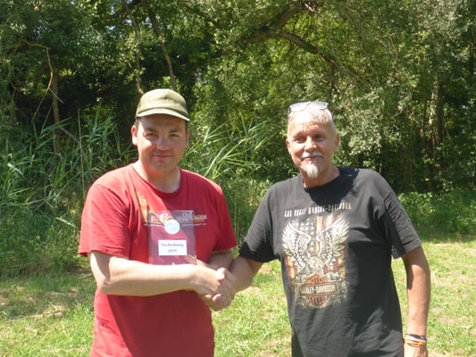 Sieger Königsangeln 2019 Torsten Vetter und 1. Vorsitzender Ralf Gröbel