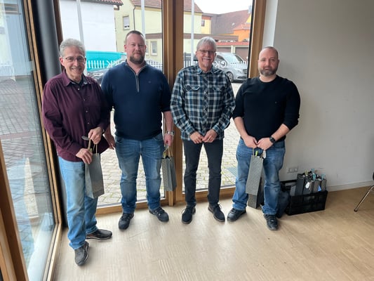 Ralf Gröbel und Siegfried Reimann für 25 Jahre Mitgliedschaft, Rudolf Hoffmann und Christian Jantzer für 40 Jahre Mitgliedschaft und Dieter Barth für 50 Jahre Mitgliedschaft.